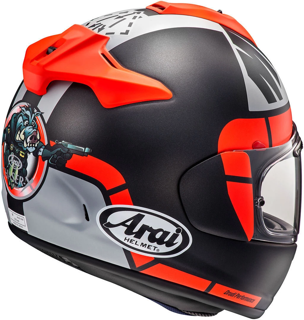 The Arai Chaser-X is a sports riding helmet designed for track and road use offering the strength and protection of Arai’s top line RX-7V race helmet but with the comfort and quietness of a touring helmet and at a more affordable price point.