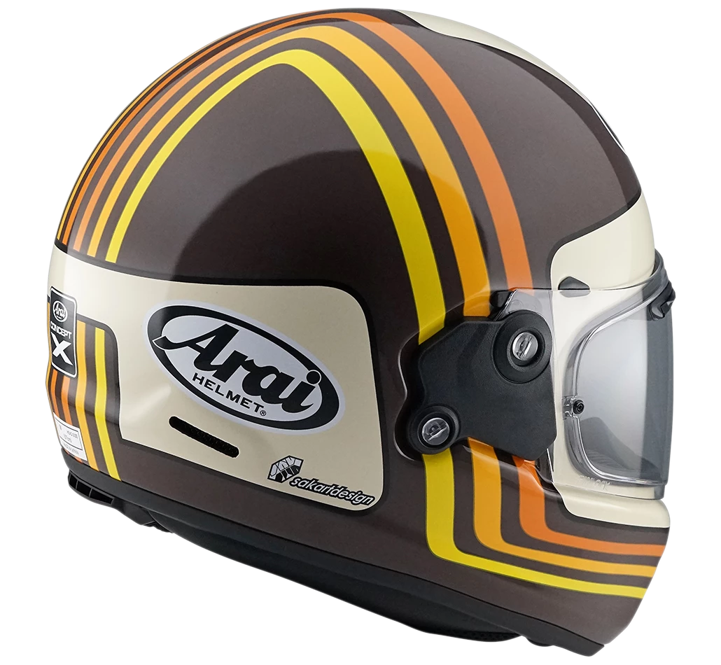 The 1980s. Motorcycles without fairings. An attitude that made you feel different from everyone else. Introduction of the Concept-X. In keeping with the simple but aggressive style of the time, this helmet comes from the heart of Arai’s R&D department. They loved the look, but that was about it. Now Arai engineers want a cool old-school look that suits your style and bikes. But they want coolness with modern Arai performance. The rugged simplicity of Concept-X is the product of imagination. But don’t draw the wrong conclusions. The retro-style may catch the eye, but it still had to pass Arai’s stringent internal tests. As a result, beneath the aggressive look is a strong, lightweight PB e-cLc shell with a smooth, rounded shape, reinforced with Arai’s proprietary peripheral belt to glide over surfaces and bounce off obstacles. The VAS-VC visor system, with its mechanical retro look, further enhances vision performance by lowering the visor pivot point to maximize a smooth top shell. Although it is reminiscent of the past, the Concept-X is, to a large extent, a helmet of the present. Ready for a generation of modern riders who demand a new, old-style – but with the performance and comfort that only an Arai helmet can provide.