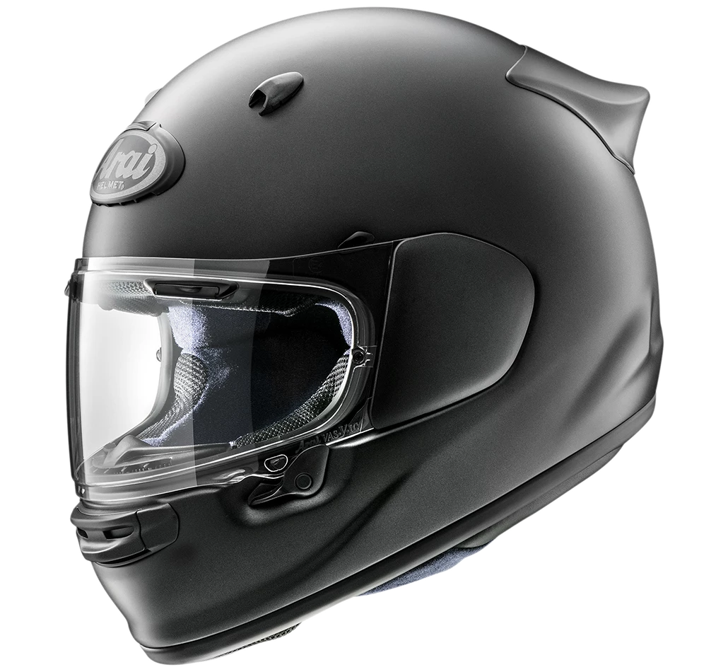 As with every Arai, the Quantic is formed around protection, first and foremost. Manufactured by hand, the outer shell maintains core strength but with a substantial weight reduction. The smooth, round shape is a key Arai signature and primarily designed to ‘glance-off’ and spread impact forces.Using the aerodynamic and protective abilities of Arai’s full-race helmets and all the experience and know-how earned over millions of road kilometres, the new Quantic slips through the air neatly and efficiently, wrapping its wearer in a cocoon of luxury. It offers a fresh choice for riders that want the very best performance from a helmet – in terms of protection, comfort and ease of wear, day-in-day out – with zero compromise. For easy access on and off the Quantic features a 5mm flare around the base, while the VAS MAX vision visor comes with a Pinlock insert ready to use. The premium brushed nylon interior is removable and features Facial Contour System (FCS) and neck roll wire pocket. It also features Emergency Release System (ERS).