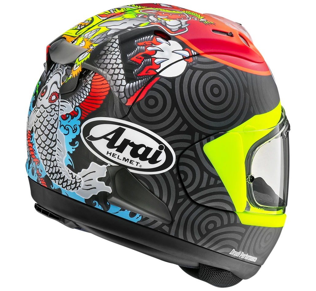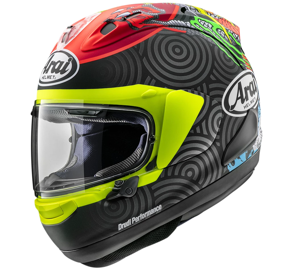 The RX-7 has always been the benchmark of Arai’s motorcycle racing R&D at the very highest level. Handmade in Japan by a three-generation family company of riders, it is Arai’s state of-the-art helmet. The new RX-7V EVO continues to be the benchmark meeting the new ECE R22-06 approval. But, even after exceeding the most recent standard, Arai does not rest and continues to look for new ways to improve rider protection. ECE R22-06 requires a much more stringent testing process than the previous ECE R22-05. Arai presented the RX-7V EVO and it gained homologation while maintaining its characteristic round, smooth and strong shell design to ‘glance-off’ and spread impact forces. Or simply put, by being an Arai RX-7V EVO. There is a difference with Arai. It’s the combination of every single piece of design, no matter how large, small or even invisible, working on behalf of the rider.