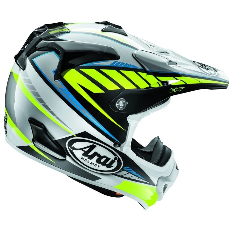 The iconic Arai VX Pro-3 receives its long-awaited replacement in the form of the Arai VX Pro 4 Helmet. The Arai VX Pro4 dirt helmet is for the serious off-road enthusiast, who requires nothing but the utmost in comfort and protection from their lid. The round shell shape is based on Arai’s R75 Shape Concept and is optimized for strength and the peak, mouth vent and top vents are all designed to break away upon impact leaving less surface mass to catch or bind.
